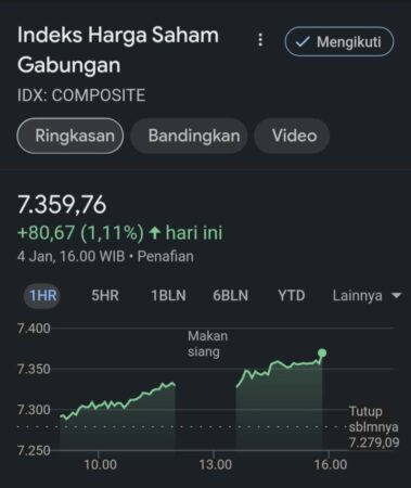 Index Sumut – IHSG ditutup menguat 1.11% di level 7.359,56, Kamis (4/1/2024). IHSG menguat di…